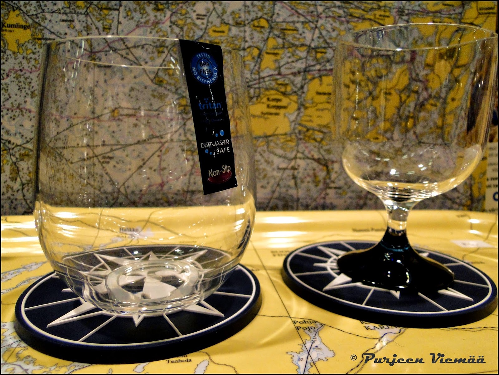 Meillä haluttaisiin vaihtaa viinilasit jalattomiin.
